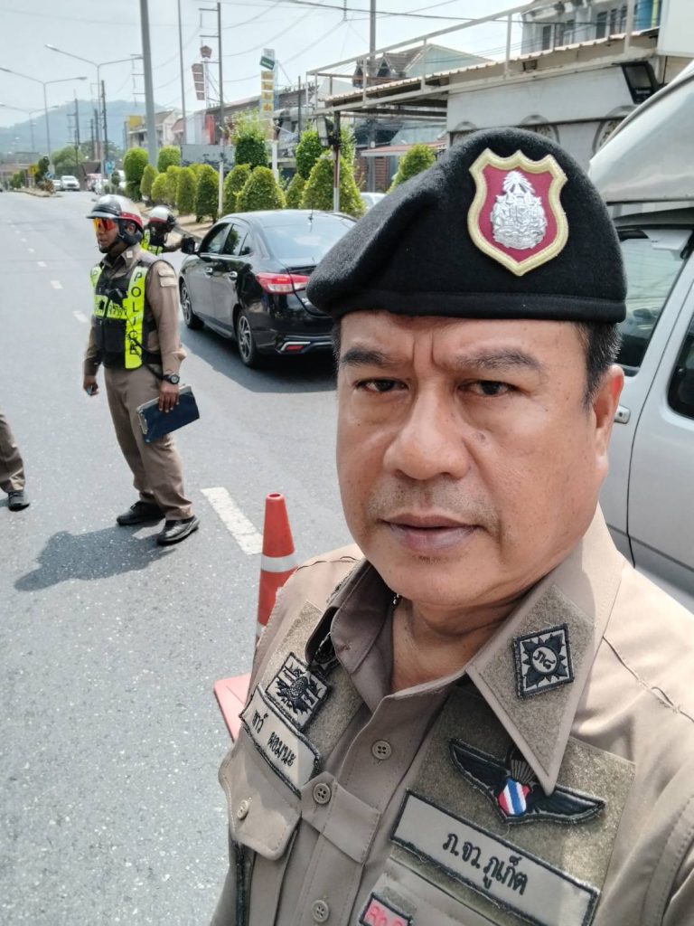 พ.ต.ท.เชาว์ ผอมนะ รอง ผกก.ป.สภ.กะทู้ ตรวจเยี่ยมจุดตรวจป้องกันอุบัติเหตุช่วงเทศกาลสงกรานต์ 2567