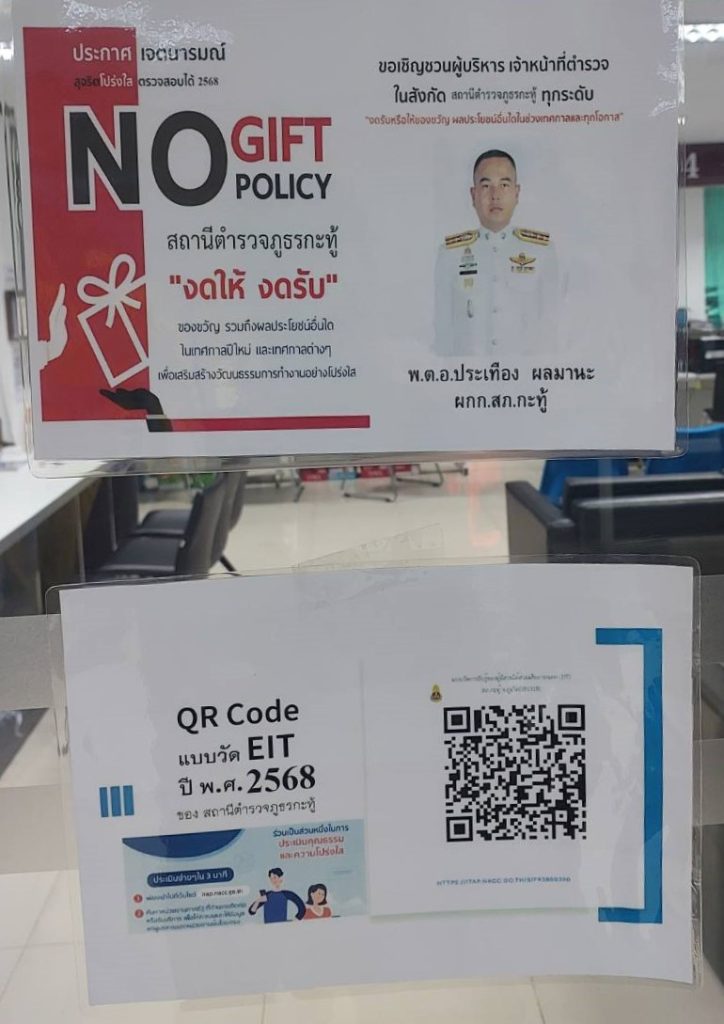 ประกาศนโยบายต่อต้านการรับสินบน No Gift Policy ของ สภ.กะทู้